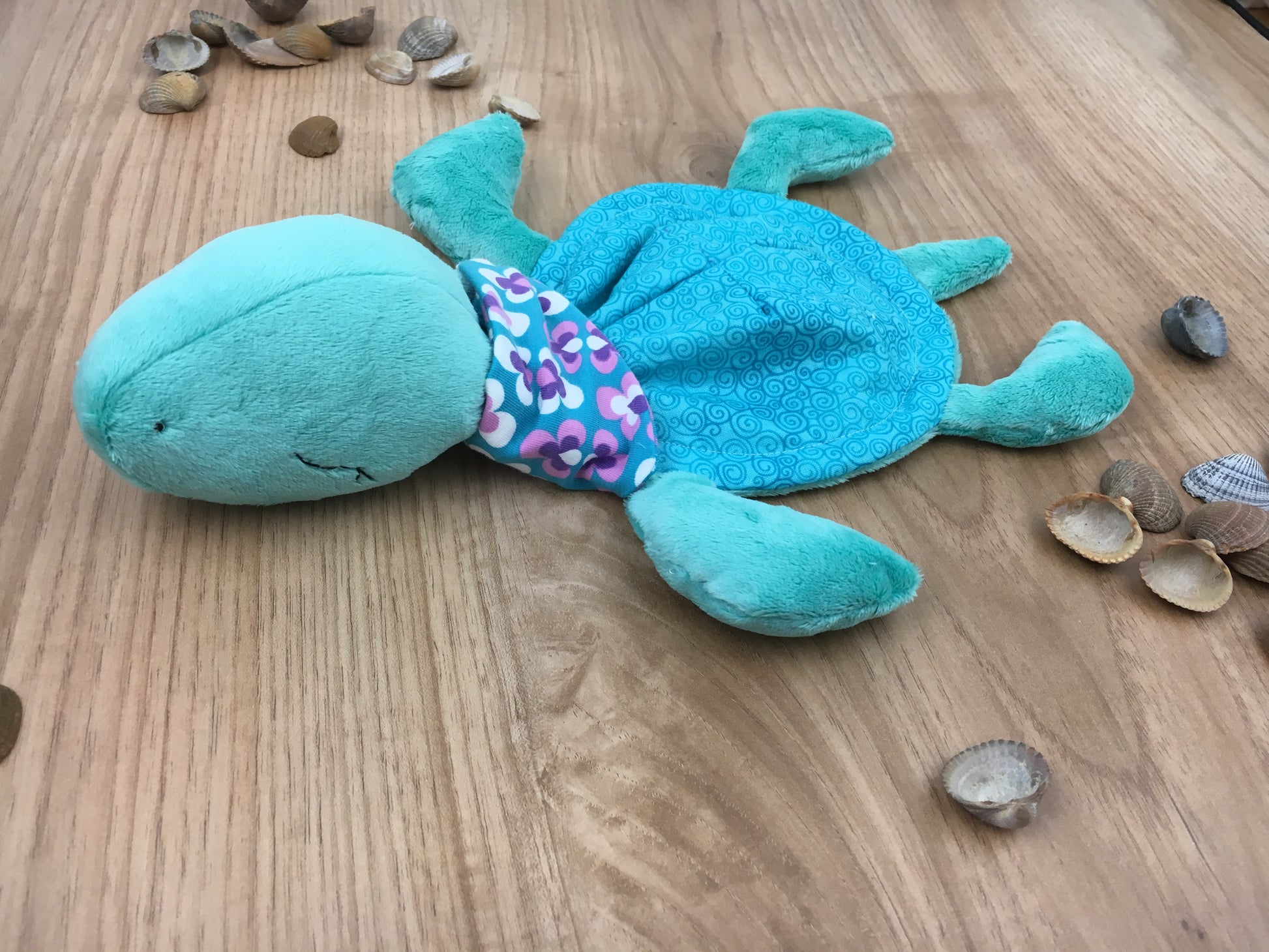 Schildkröten haben einen harten Panzer? Dann kennst Du Thea noch nicht? Ihr Panzer ist kuschelig weich, so wie ihr ganzer Körper. Am liebsten hält sie sich in kleinen Kinderbettchen auf und dort ist es wichtig schön kuschelig zu sein.